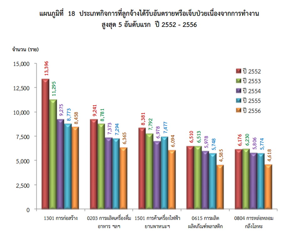 สถิติการได้รับอันตรายและเจ็บป่วยจากการทำงาน โดยสำนักงานประกันสังคม