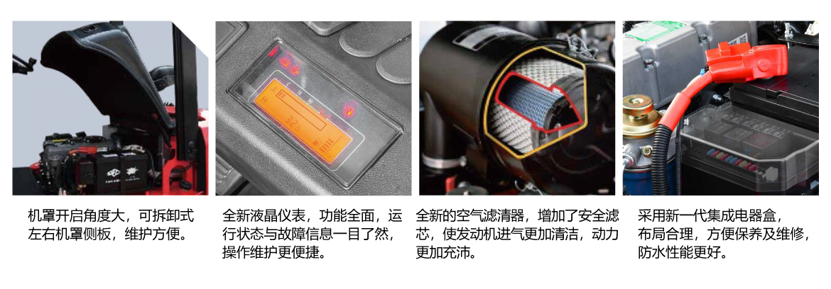 采用散热性能更强、结构强度更高的铝质板翅式散热器,优化散热通道,双通风孔平衡重,大大改善冷却效率,提高了重载作业的可靠性,确保发动机可靠工作。