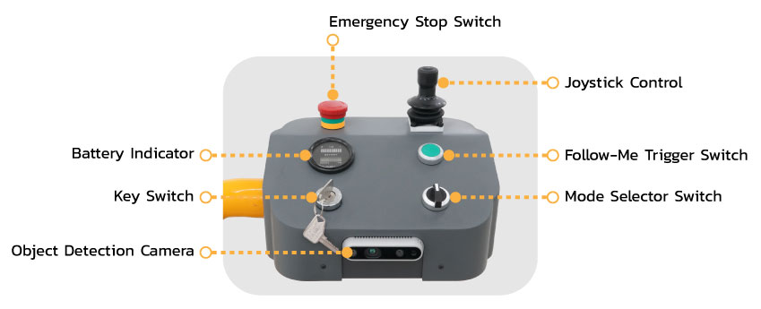 Switch the Mode Selector Switch to “Manual”, then use the Joystick Control to manually operate the cart.