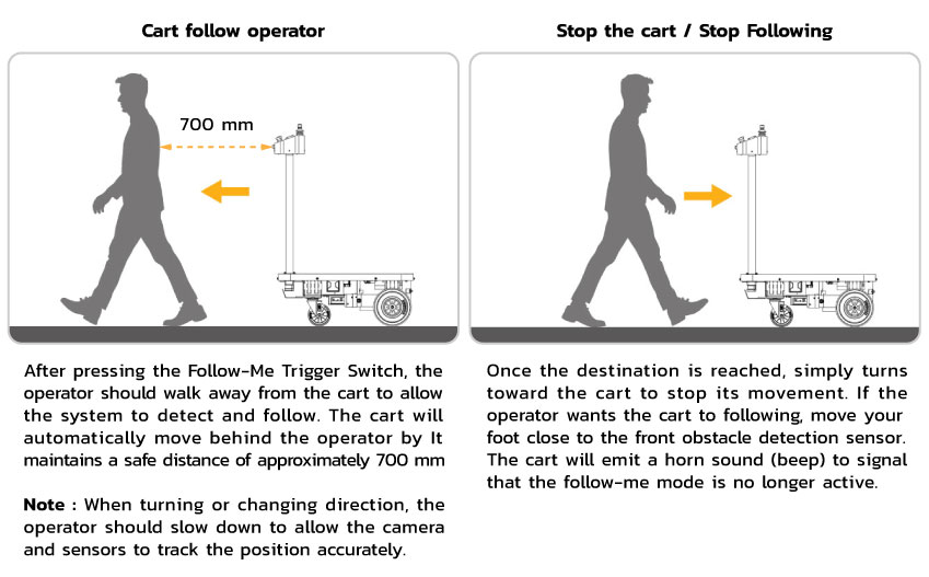 Elevate your material handling operations in factories and warehouses with the Follow-Me Robotic Cart, an intelligent transport solution with modern design, convenience and safety in mind. Equipped with advanced camera and human-detection sensor technology, this smart cart can accurately and autonomously follow the operator. Simply walk ahead, and the cart will maintain a safe following distance. With maximum load capacity of 500 kg, it is ideal for material transport and intralogistics operations in factories, warehouses, and production lines.