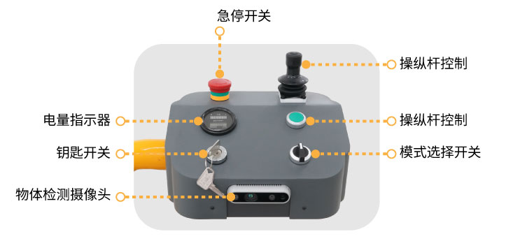 将模式选择开关切换至“手动(Manual)”模式,然后通过操纵杆操作推车进行手动控制。